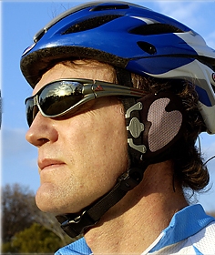 looking behind you and continuing to ride a straight, sure line takes practice and you can’t be looking behind you all the time.  Make use of all the information available to you, both visual and auditory.  Listen for cars or bikes coming up behind you.  Learn to estimate their speed from their sound.  Know when they are going to pass.  Never wear earbuds and listen to your iPod on your bike like the guy in the picture on the left who not only has earbuds but special shields to block out external noise so he can hear his iPod better.  Wearing earbuds on a bike is like having “I’m a dumb ass” tattooed on your forehead.